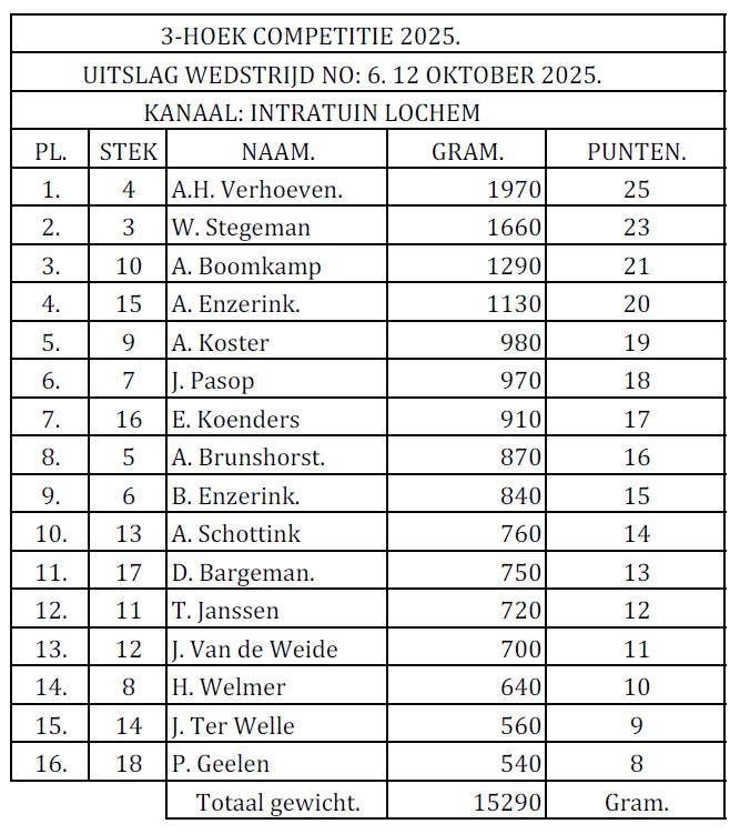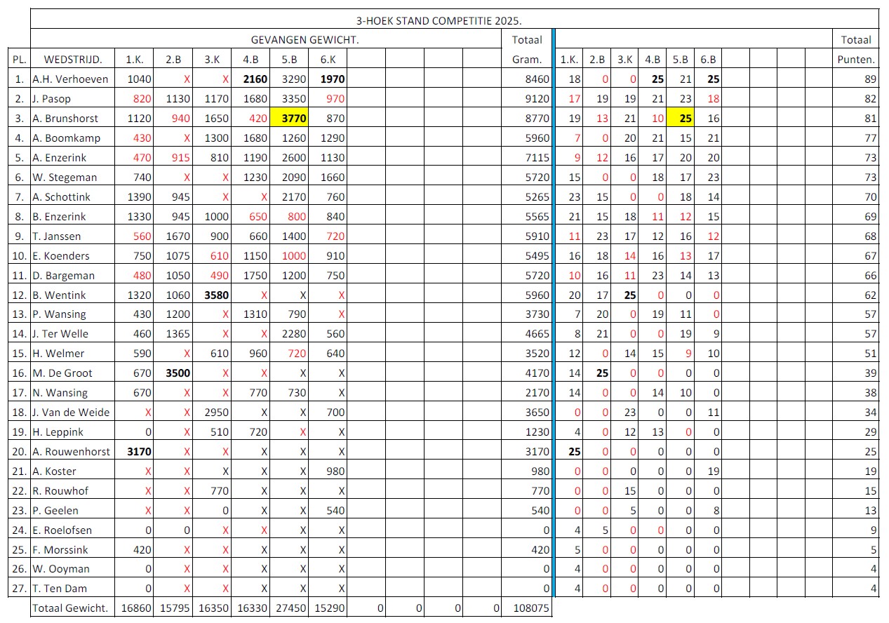 Uitslag 6e en Eindstand 3-hoekwedstrijden 2025