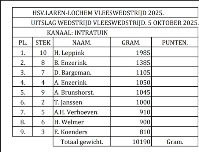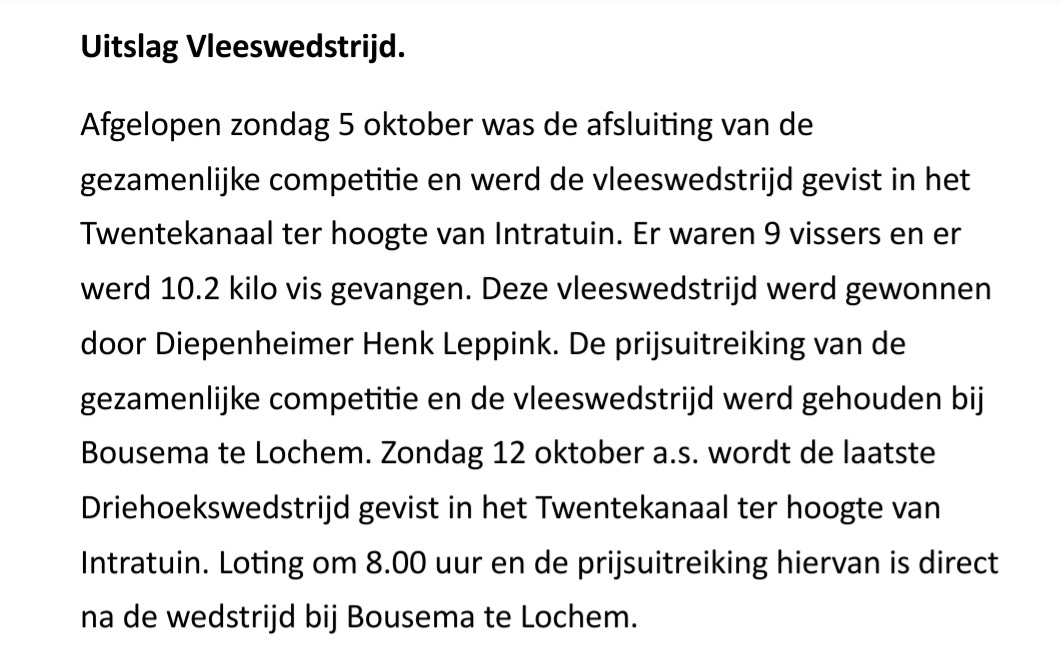 De uitslag is te vinden op de site van Sportvisserij Oost-Nederland: